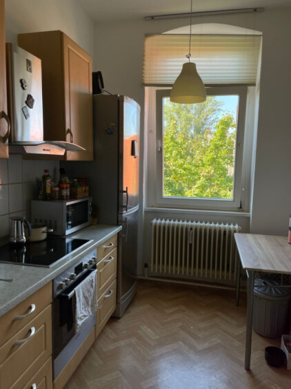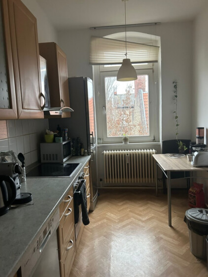 The apartment also has a great eat-in kitchen where you can sit comfortably. The kitchen is fully equipped but we use the kitchen together by arrangement. There are enough crockery and kitchen appliances, W-Lan is included.