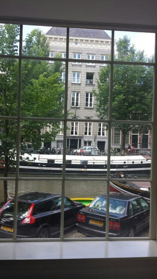 Leuke kleine studio aan de gracht met fantastisch uitzicht op de Herengracht, 1 persoon bed en kleine keuken. Achter kleine patio.Badkamer met douche en toilet. Houten vloer.