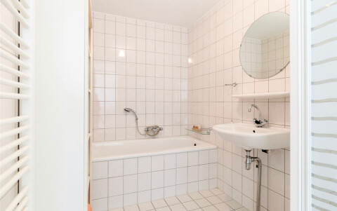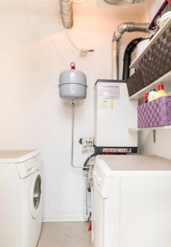 Gedeelde woonkeuken, gedeelde badkamer met ligbad en aparte douche. Separaat toilet.